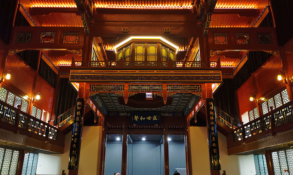 戲樓內(nèi)聲光電建設(shè)同樣值得期待?;诒卷?xiàng)目的特殊情況,如何在市級(jí)古文物建筑上進(jìn)行燈光音視頻系統(tǒng)改造并達(dá)到既定效果顯得尤為重要,仁歌技術(shù)團(tuán)隊(duì)將音響系統(tǒng)、燈光系統(tǒng)、舞臺(tái)機(jī)械控制系統(tǒng)進(jìn)行“隱身式”布置,實(shí)現(xiàn)了古韻之美的戲臺(tái)與現(xiàn)代聲光電技術(shù)的完美融合,系統(tǒng)配置均達(dá)到了國家標(biāo)準(zhǔn)并符合戲劇演出需求,讓來到現(xiàn)場(chǎng)的每一位觀眾體驗(yàn)沉浸式演藝。