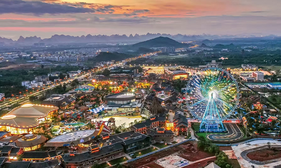 項(xiàng)目位于桂林市雁山區(qū)與七星區(qū),是廣西文旅融合發(fā)展的龍頭項(xiàng)目,以桂林山水文化和民族文化為設(shè)計(jì)靈感,包含海世界、水世界、歡樂部等樂園,同時(shí)還有商業(yè)小鎮(zhèn)、劇場和酒店配套設(shè)施。仁歌股份負(fù)責(zé)樂園和小鎮(zhèn)區(qū)域的夜游燈光、音響及視頻設(shè)備的供貨、安裝、調(diào)試及最終效果呈現(xiàn)的編程。