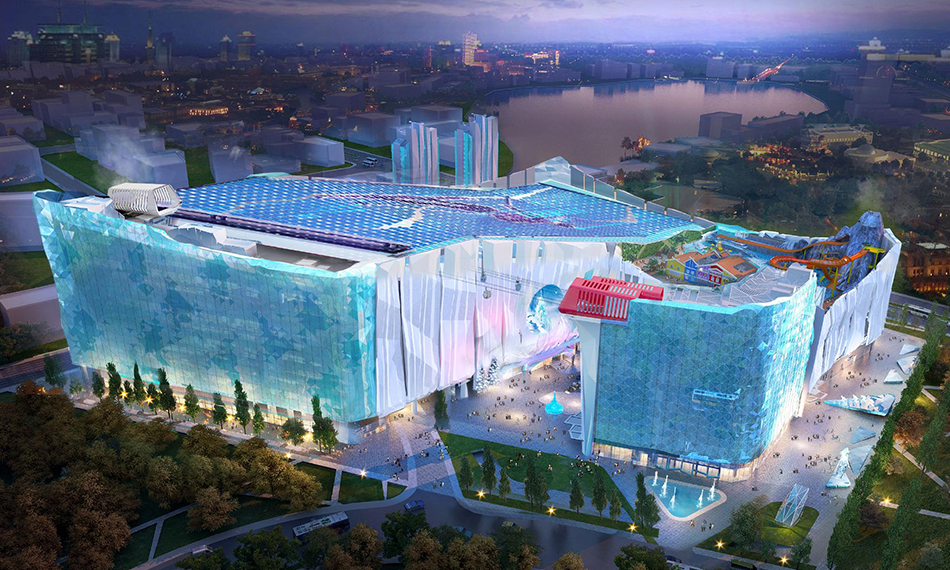 該項目主要分為室內(nèi)滑雪場、室內(nèi)外嘻水中心、度假酒店、精品酒店四個部分和商業(yè)配套,下設一層地下室,總建筑面積約30萬平方米。仁歌負責該項目的五個區(qū)域:包含布谷鳥舞臺、洞穴探險、登山體驗、沖浪池舞臺和火山特效,共涉及舞臺燈光,音響,互動視頻,水特效等系統(tǒng)內(nèi)容。